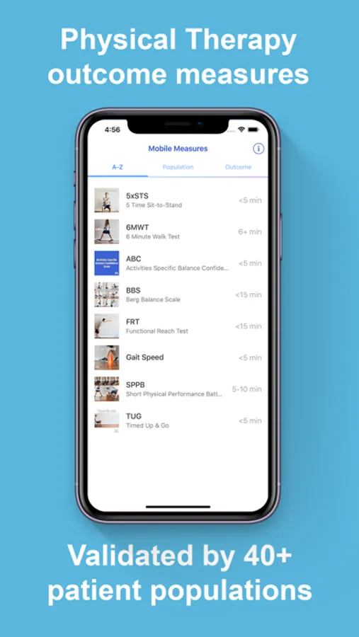 Mobile Measures is an outcome measure calculator and reference tool for physical and occupational therapists. It provides access to high-quality patient assessment tools that are scientifically proven to measure critical aspects of health and functional status including fall risk, frailty, prognosis, and much more.