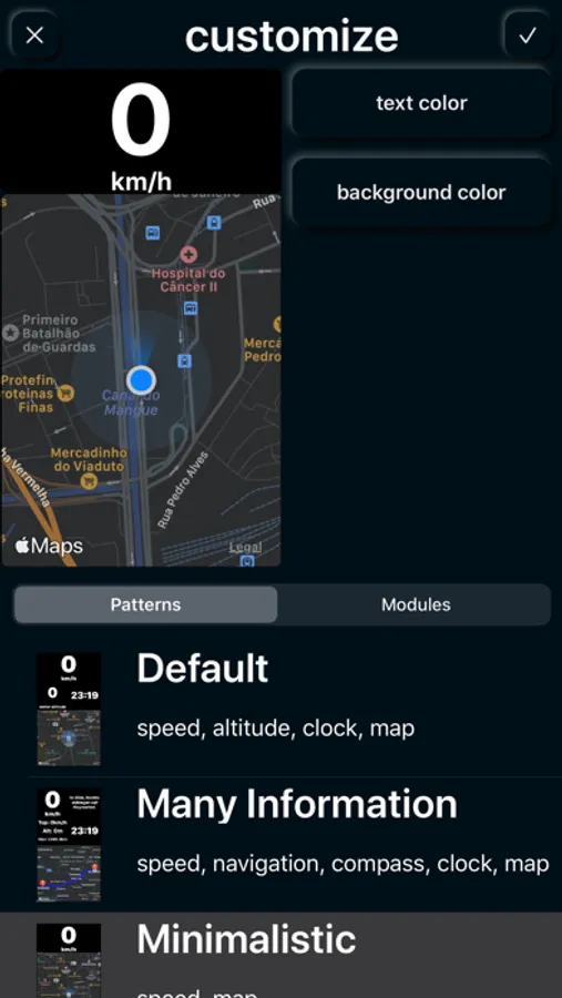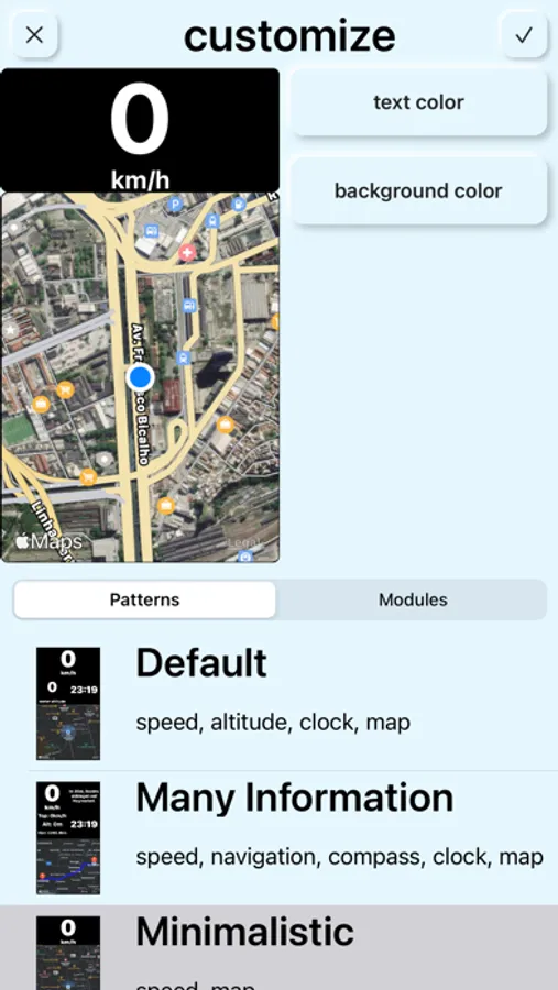 Within the app you can combine different modules to your personal layout - or use ready-made ones. For each module you can define a color - or use a predefined color scheme. You have the choice.