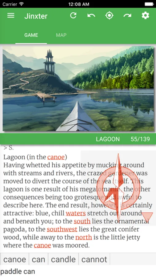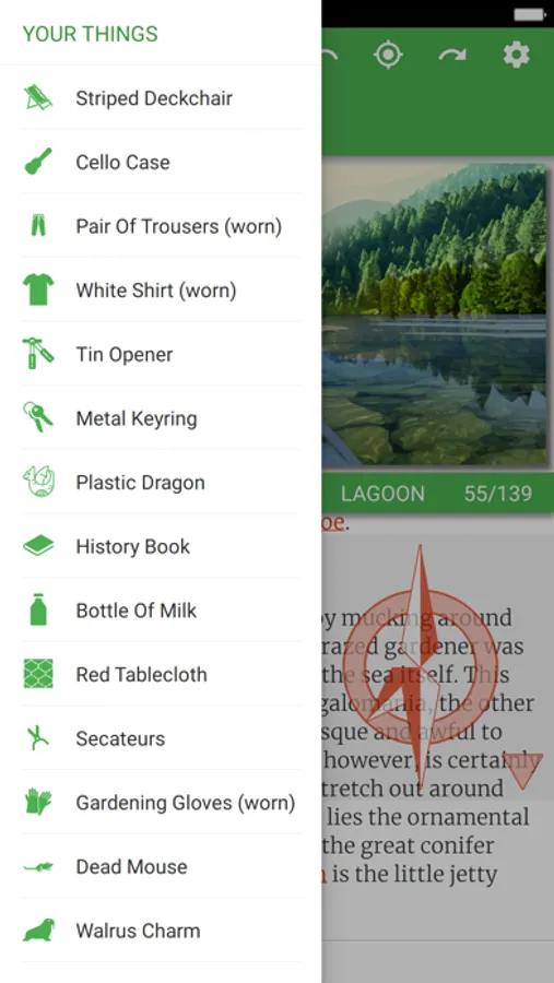 Quickly navigate with a handy compass gadget. It shows the available exits at all times, simply tap to move.