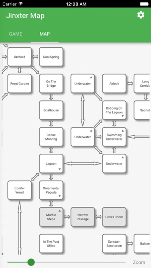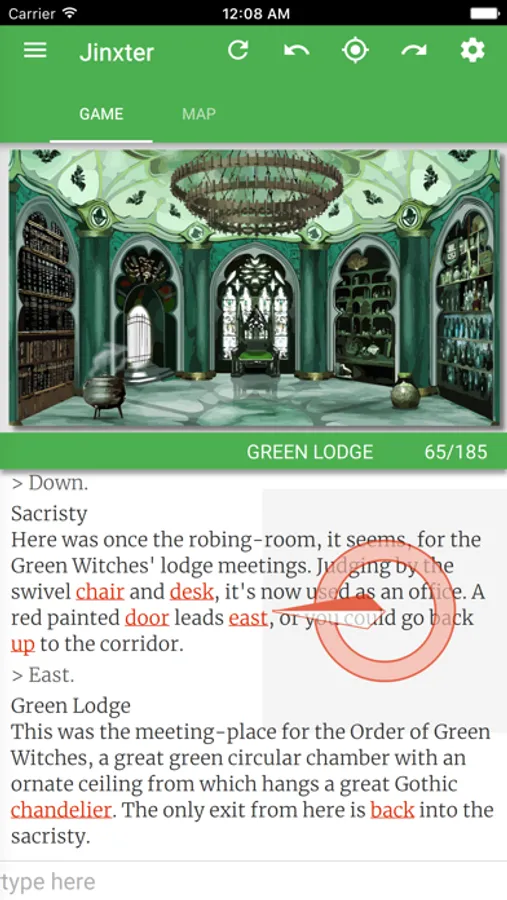 No need to draw out the map, we do it for you. As you explore the game, the map page will expand. Tap any previous room on the map to "fast-goto" that location.