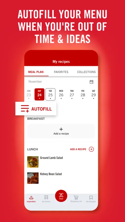 • Autofill your weekly meal plan when you’re out of time or ideas