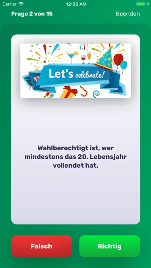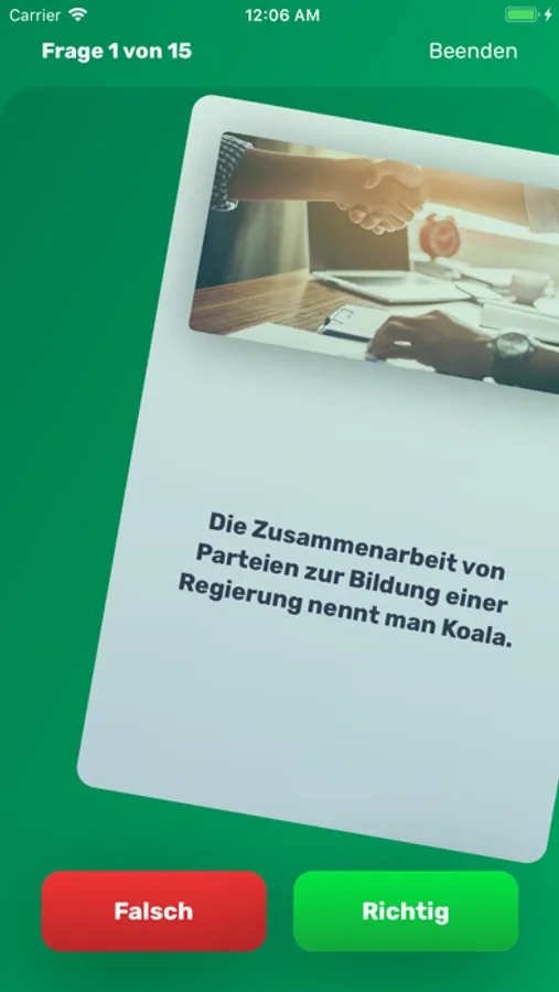 In einem Quiz stellen wir dir Ja-Nein-Fragen, die du mit einem Wisch ganz einfach beantworten kannst. Swipe nach links heißt nein, Swipe nach rechts heißt ja. Bist du ein Wahl-Experte?