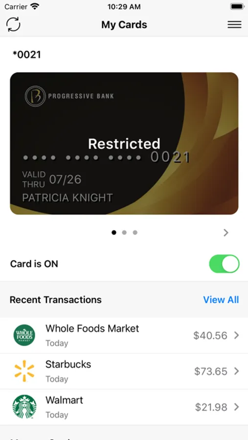 PBCardControl protects your debit cards by sending transaction alerts and enabling you to define when, where and how your cards are used. Download PBCardControl to your smartphone, then set your preferences to monitor and manage your cards.