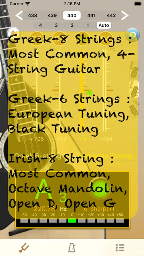 ▪ A4 Frequency adjustment: choose 428~452 frequencies for A4 string.