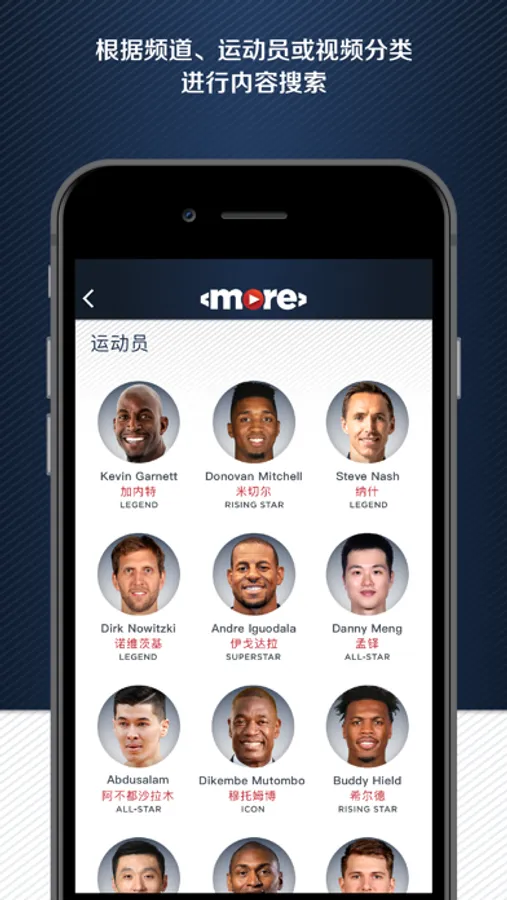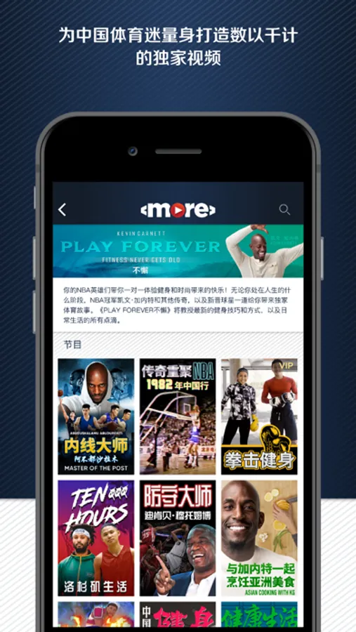 在这里你能找到丰富的产品和原创短视频内容。MORE将向你讲述体育明星的精彩故事,从NBA传奇加内特、纳什、姚明、诺维茨基、穆托姆博、慈世平到现役巨星哈登、伊戈达拉,还有联盟小鲜肉米切尔、拉文、东契奇…当然也少不了我们自己的CBA明星和国内外知名意见领袖等。