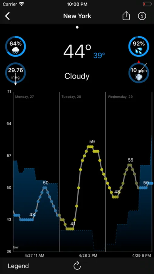 WeatherGraph is a simple but powerful weather app for iPhone, iPad, and Apple Watch which displays weather forecasts in the United States from the National Weather Service (NWS) in an easy to read graphical format.