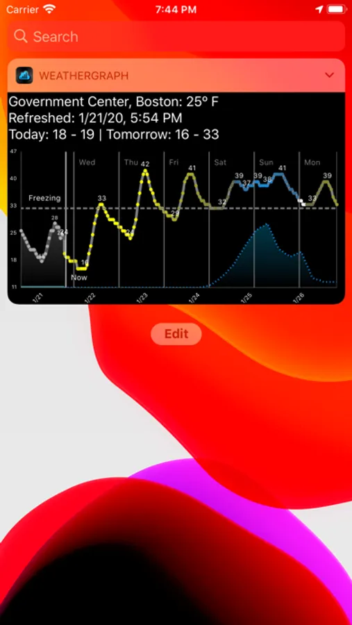 WeatherGraph features 24 hours of observations and 7 days of forecasts for the locations you provide and has the ability to display record highs and lows for each weather station you follow. WeatherGraph also has a Today View Widget showing a graph of upcoming weather conditions and an Apple Watch app with a complication showing the highs and lows and rain probability for the next 2 days.