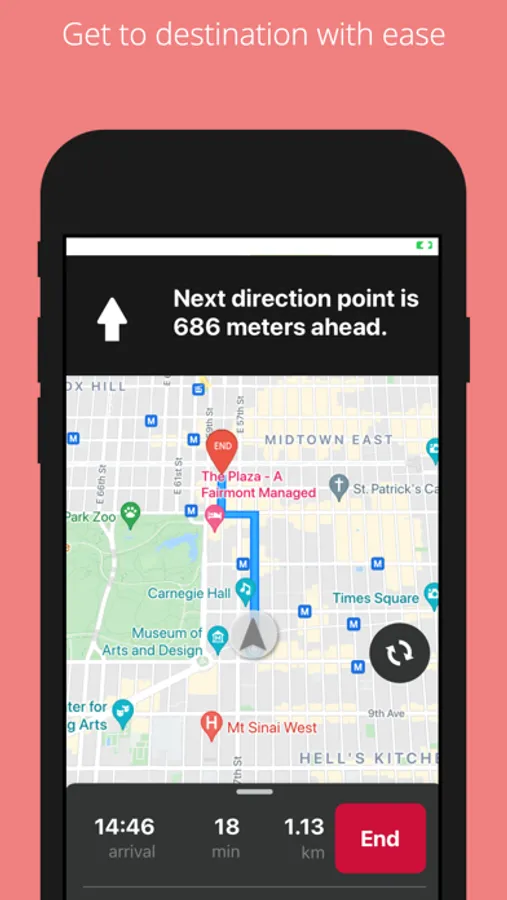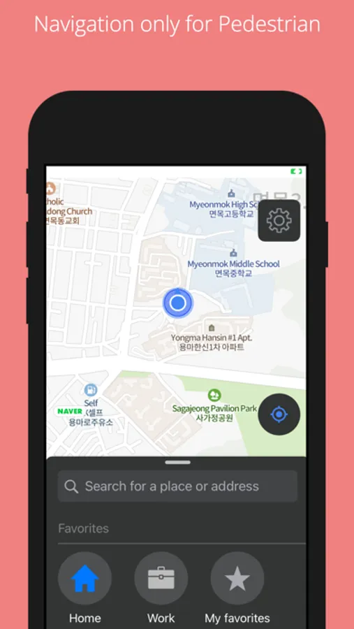 Car navigation system guides us to destination with voice. So we can get to destination easily. Then what about navigation for pedestrian? With "Map, Navigation for Pedestrian", we can get to our destination easily. We don't have to stop and check out map. Walking will be more fun.