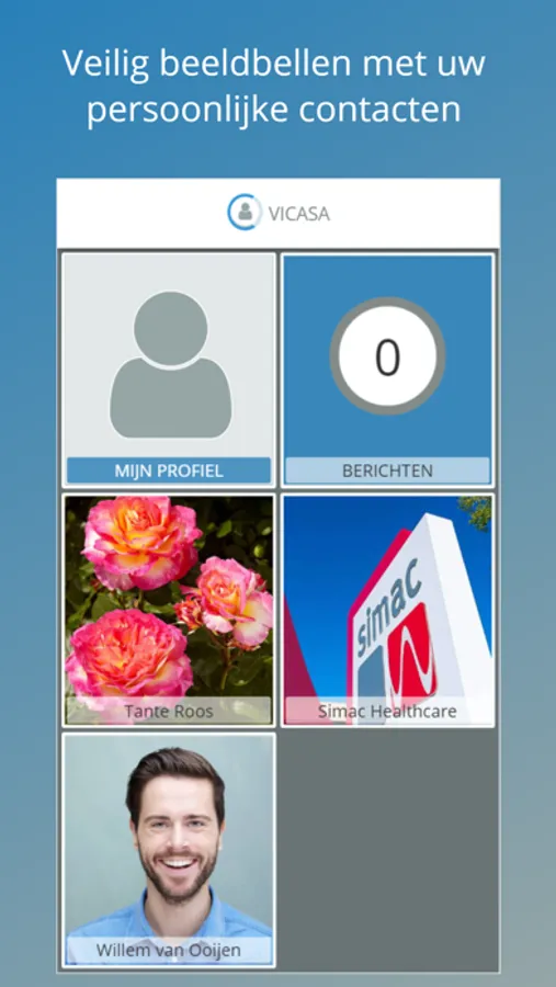 Met Vicasa kun je in de gesloten omgeving van de zorginstelling beeldbellen met jouw contacten. Vicasa is hierdoor alleen te gebruiken wanneer je beschikt over persoonlijke inloggegevens.