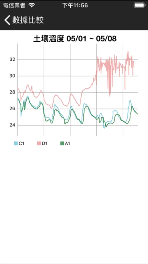 Our app reads data from our back-end database, selecting a specific sensor based on sensor type, attached gateway, and located area. We also enable a query function using calendar to select a range of date which the user is interested in when trying to check the data. Later on, we collect the entities of data and visualize it with automatically generated line chart, which can be zoomed in/zoomed out and examine specific data point.