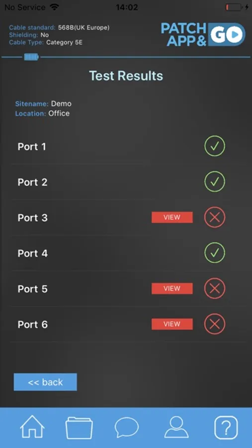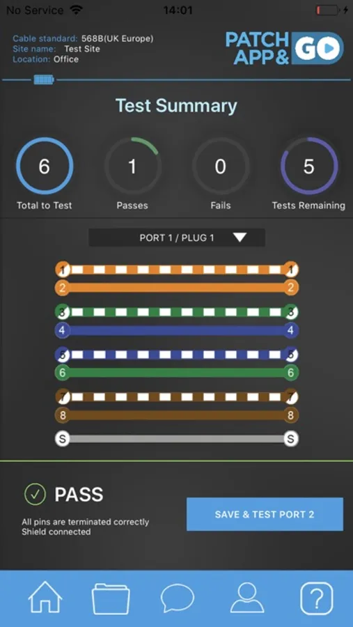 The Patch App & Go T1 is suitable for testing Cat 5e, Cat 6, Cat 6A, unshielded and shielded network cables. As the device performs each test, the results will appear as a pass or fail on your mobile device. When a fail is reported, the app will instantly display errors such as mis-wires, split pairs, shorts and open ends.