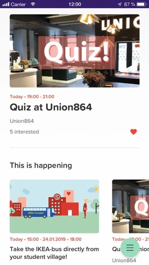 • Event calendar with student events from SiO and SiO's partners