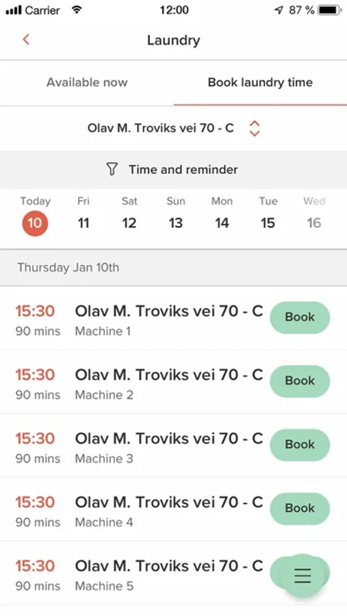 • Booking of laundry time for those who live in student accommodation