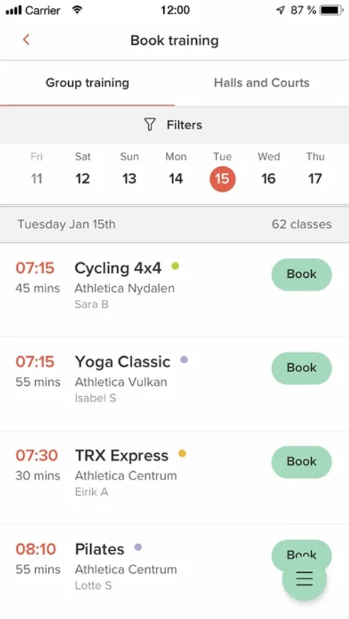 • Booking of group training classes, halls and courts at SiO Athletica's clubs