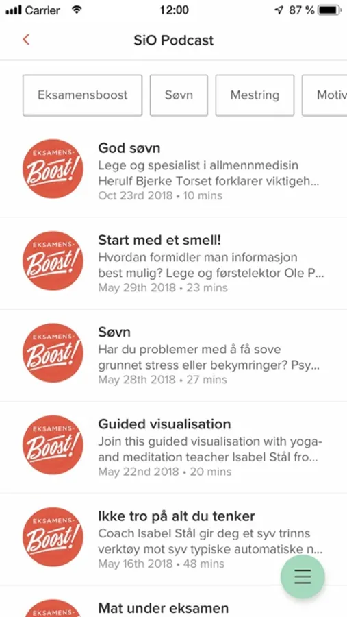 • Listen to podcasts with varied content; manage stress, sleep, motivation, study tips and more