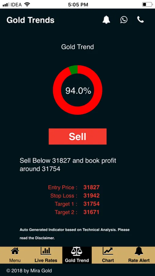 Mira Gold iOS App has unique features of Gold Trend which predicts the future Gold Price based on Advanced Technical Analysis tools. The Realtime and Historical Gold Prices are used in Technical Analysis Tools to predict the Future Price movement with suggested targeted price and stop-loss levels.