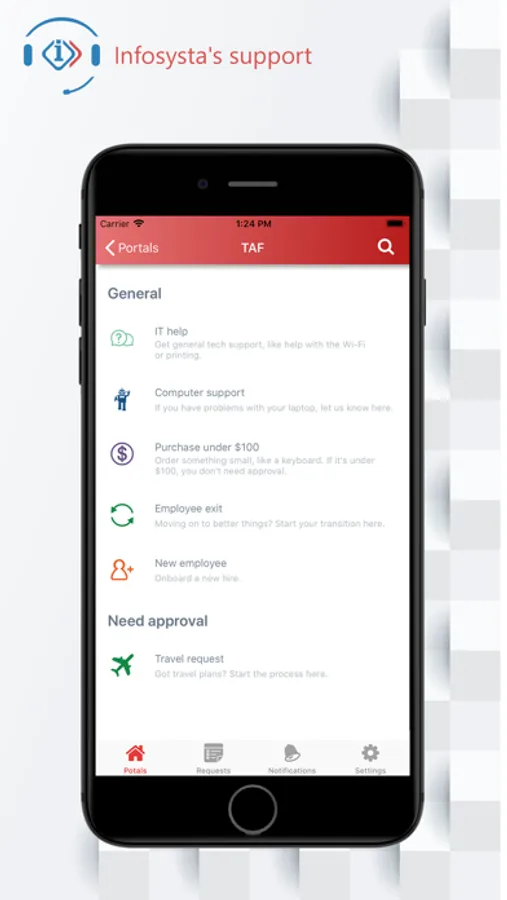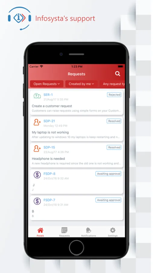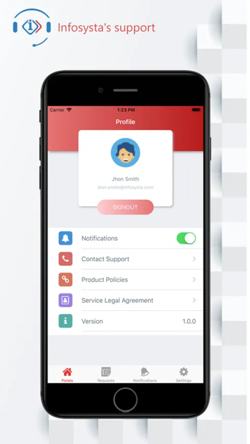 Infosysta Support is a brand from Mobile for Jira Service Desk Portal that can be found through this link https://itunes.apple.com/us/app/mobile-for-jsd-portal/id1395894388?ls=1&mt=8.