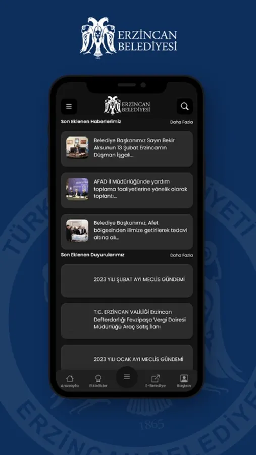 Erzincan Belediyesinden ilk önce siz haberdar olun. Erzincan Belediyesi Resmi Mobil Uygulama sayesinde belediyemiz hakkındaki haberlere, duyurulara , ihalelere, projelere ve daha çok fazlasına rahatça ulaşabilecek, Çek-Gönder modülü sayesinde uygulama içerisinden anında belediye görselli mesaj bırakabileceksiniz.