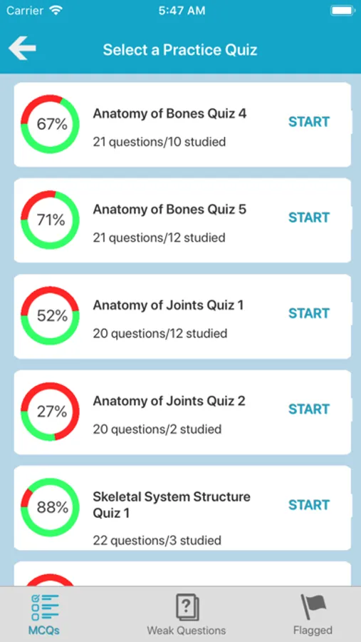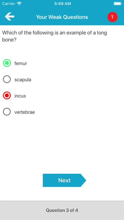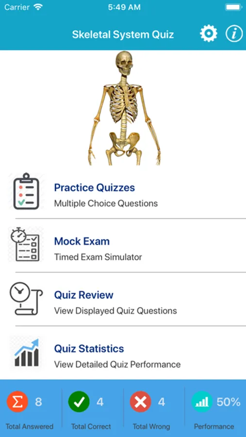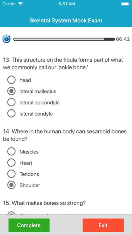 There are 2 quiz mode. One of quiz include at the following skeletal system topics.