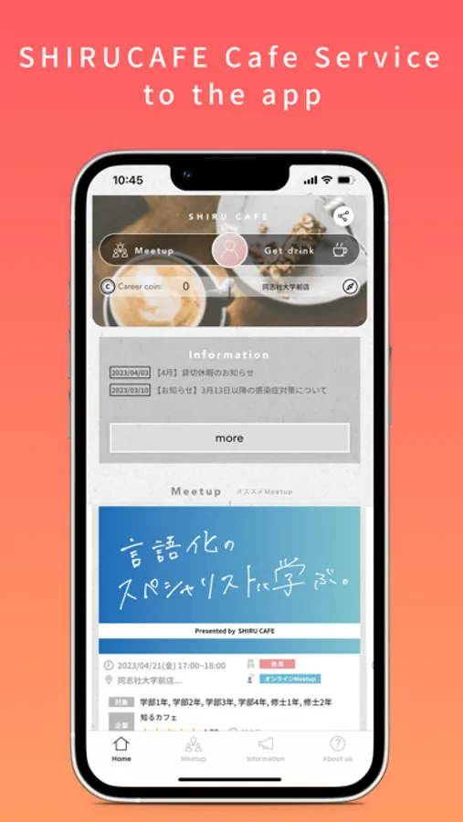 You can enjoy all services of SHIRU CAFE, at any of our stores worldwide with this single app.
