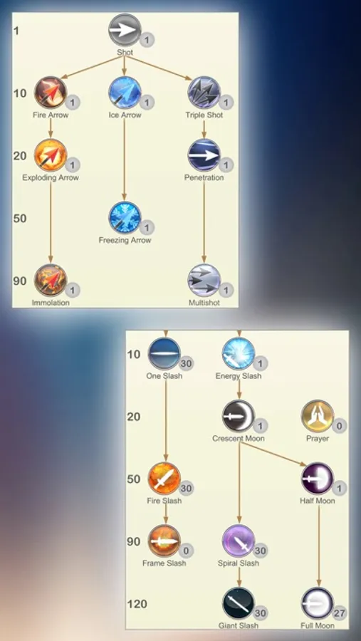 - Magic Knight: powerful with magic sword, he can use both melee and magic skill.