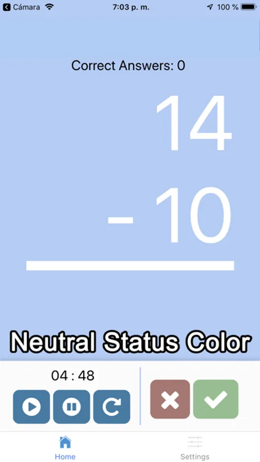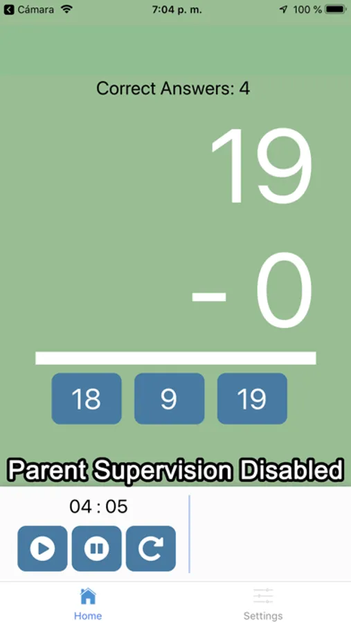 Once the timer reaches zero, the app stops displaying math facts and freezes the answer counter. The timer can be paused or reset to restart a session.