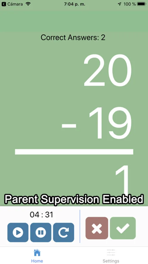 - Parent Supervision Enabled: The answers are not displayed. An adult presence is required to confirm the answer and mark it as correct or incorrect.