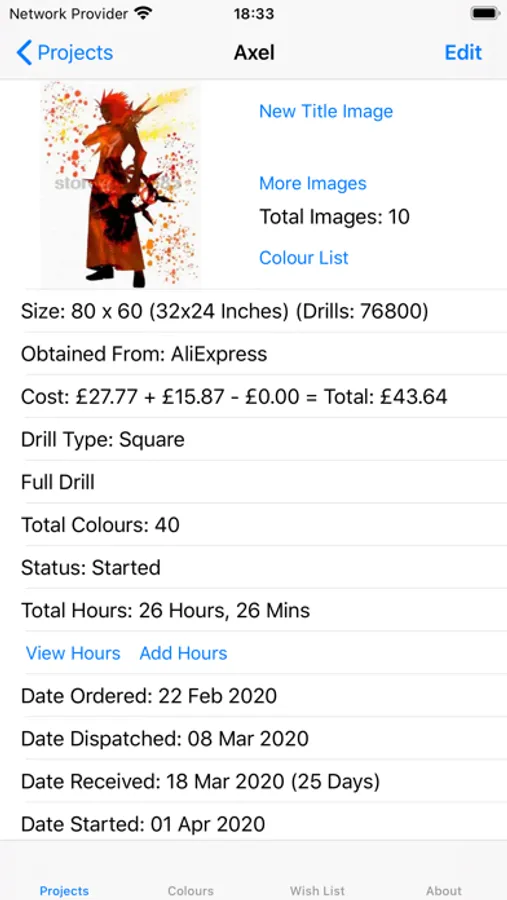 An app that allows for tracking your Diamond Painting projects. Keep all your project information in one handy place.