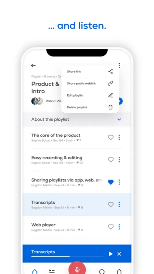 Information gets perfectly structured in playlists that can be shared in Audvice or on other platforms.