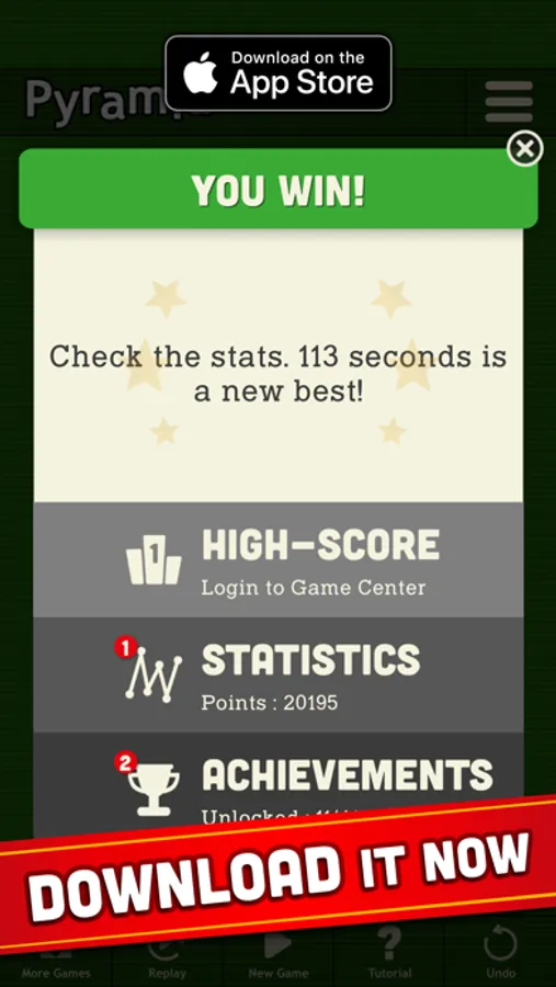 Relax, clear the Pyramid and get rewarded with tons of achievements, great animations and points for your leaderboards.