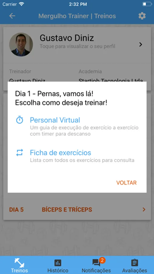 Funciona assim: você treina, tira dúvidas, comunica com seu treinador, visualiza sua avaliação, e recebe o treino com fotos e vídeos dos exercícios que foram planejados pra você.