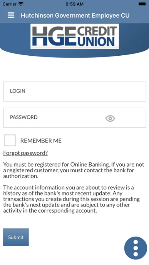 Hutchinson Government Employees Credit Union Mobile App at your fingertips! We’ve made it easy to manage your accounts while on the go. Use the Hutchinson Government Employees Credit Union Mobile App to Check Balances, View Transactions, and Search for specific transactions by amount/date, Transfer Funds/Make Loan Payments. This is a free service for members, however, data rates may apply from your wireless carrier.
