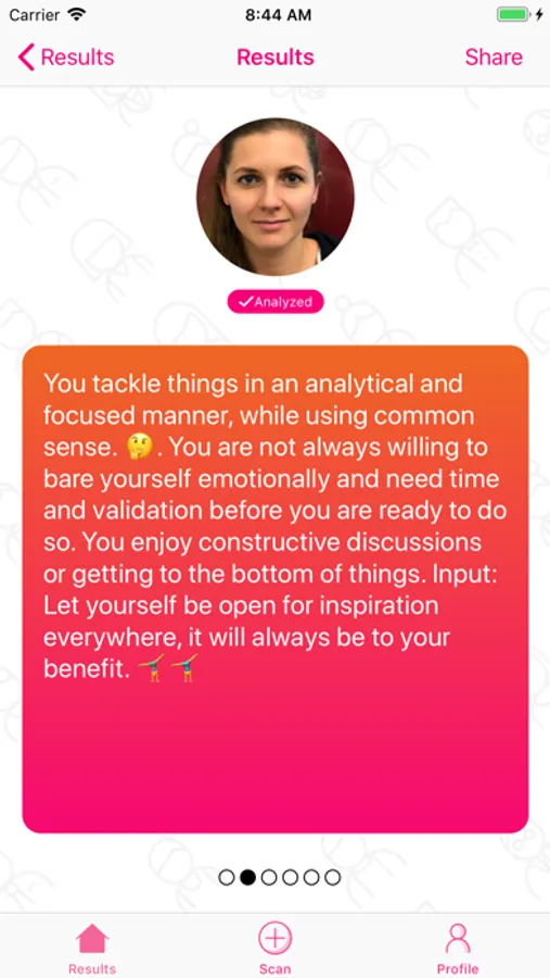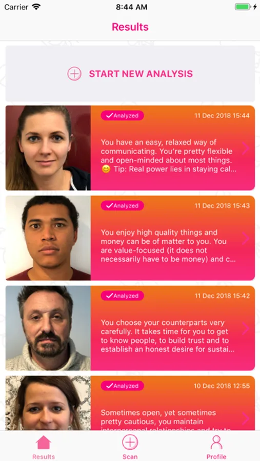 You ask yourself if this can work? It can! CloseUp uses the centuries-old knowledge of physiognomy and combines it with state-of-the art technology. Based on the different characteristics and the relation e.g. of mouth, eyes and nose in a face, a specifically designed algorithm analyses the scanned picture of a face and creates a personalized evaluation.