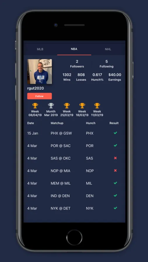 Hunch is perfect for quick and easy predictions. You get access to important stats for each team, so you can make informed decisions on your predictions.