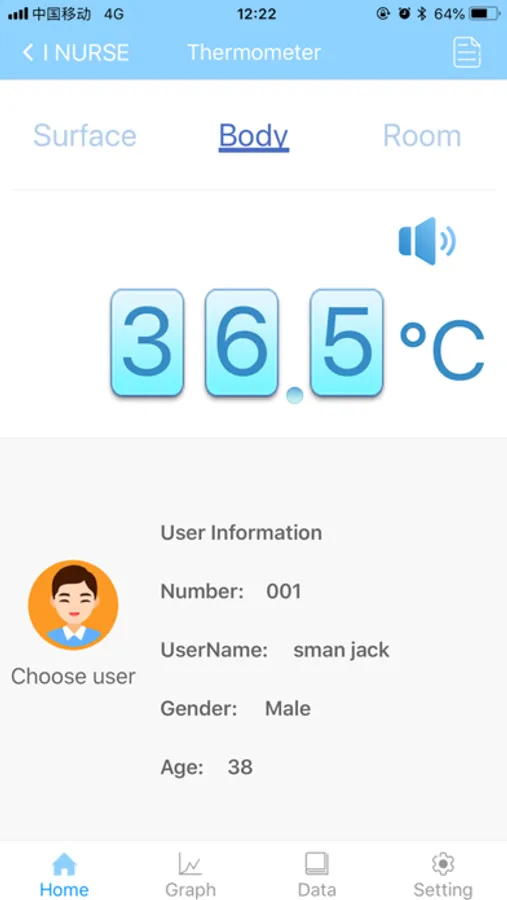 Temperature measurement is performed by the temperature measurement hardware, and then the temperature measurement data is transmitted to the App for management via Bluetooth. The temperature measurement data of multiple users can be recorded and transmitted to the user's designated mailbox.