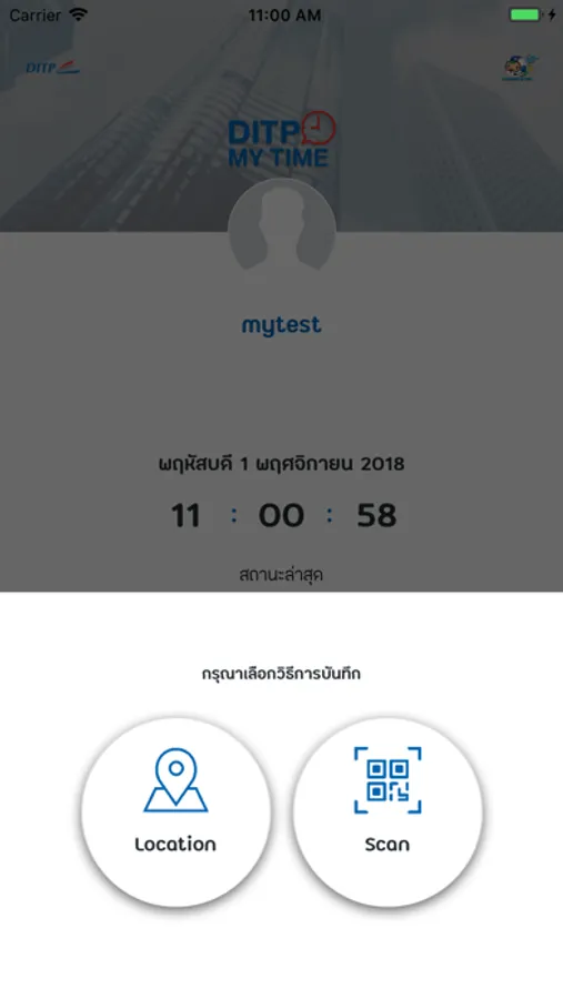 DITP My Time เป็นเครื่องมืออำนวยความสะดวกในการลงเวลาเข้า-ออกการปฏิบัติงานให้แก่บุคลากรในองค์กรของท่านด้วยการสแกน QR Code หรือ ผ่านตำแหน่งปัจจุบัน