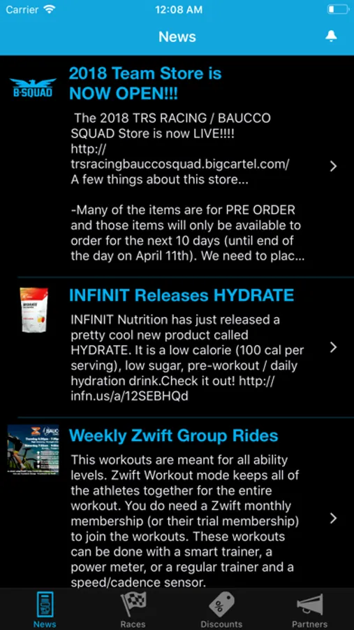You can get all the latest news for your team, check out what races everyone is going to, let teammates know what races you are going to, have discussions about those races, get your discount codes and visit our team partners!
