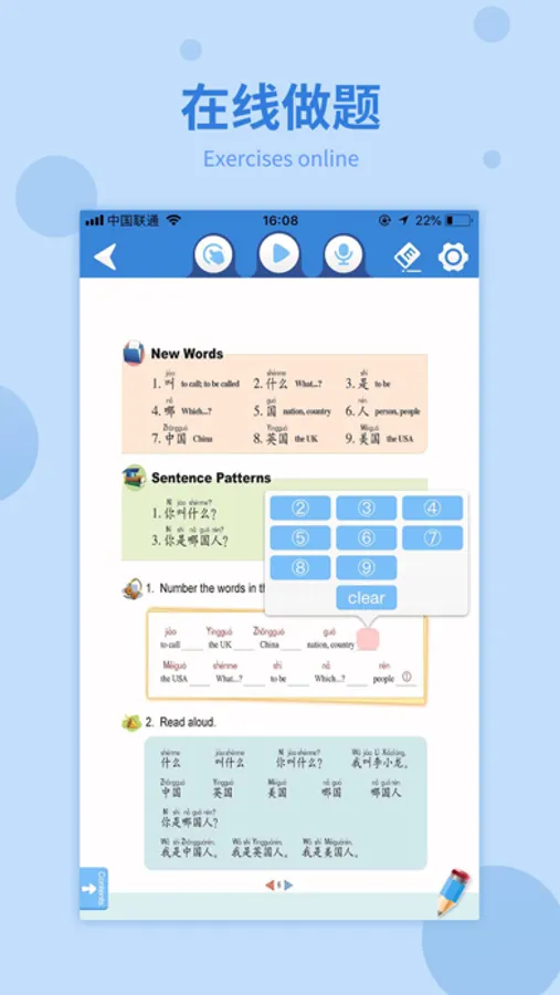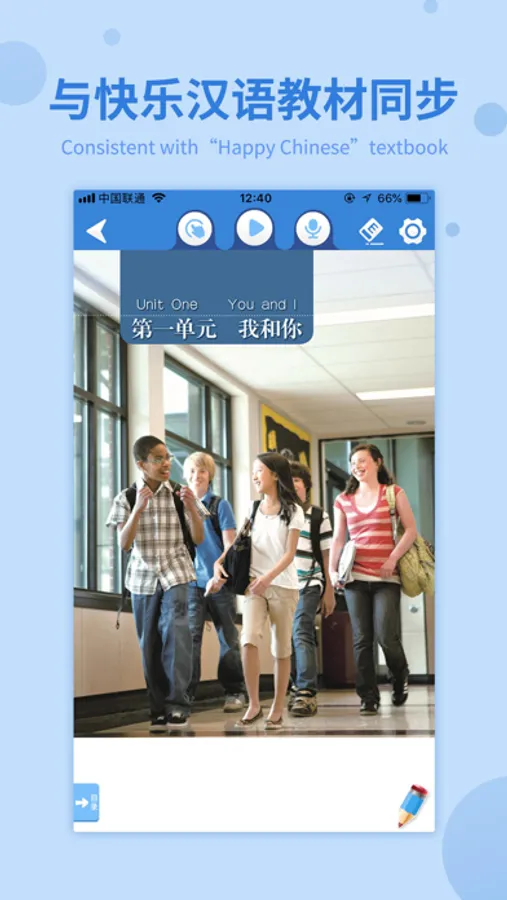 “Learn Chinese App” is a Chinese digital textbook specially designed for overseas primary and middle school students, including mobile, iPad . It is based on the “Happy Chinese” textbook developed by Hanban/Confucius Institute Headquarters in China. It uses an advanced intelligent evaluation system to continuously provide updated services.