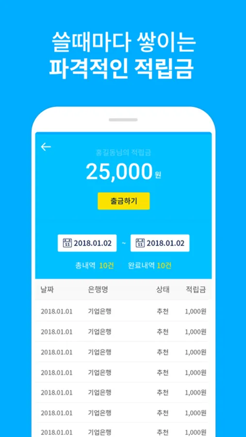 * 쌓인 적립금은현금인출가능!