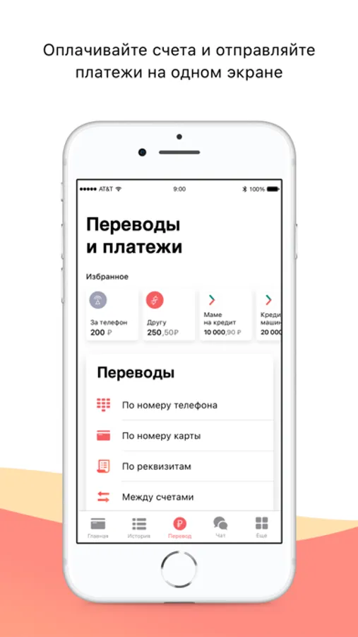 ∙ переводы между собственными счетами, картами, вкладами;