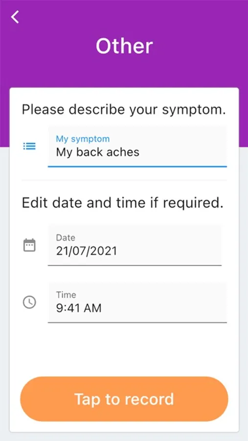 The function of this App is to provide a convenient tool to record your symptoms and transmit them to the clinician who will be reviewing your ECG recording at the end of the monitoring period. This App does not notify a clinician at the time you are experiencing symptoms. This App does not provide a diagnosis or medical advice.