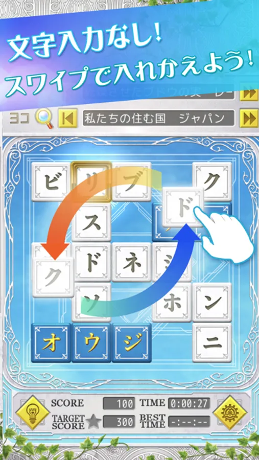 ■スワイプ操作で文字を入れかえるだけの簡単クロスワード!