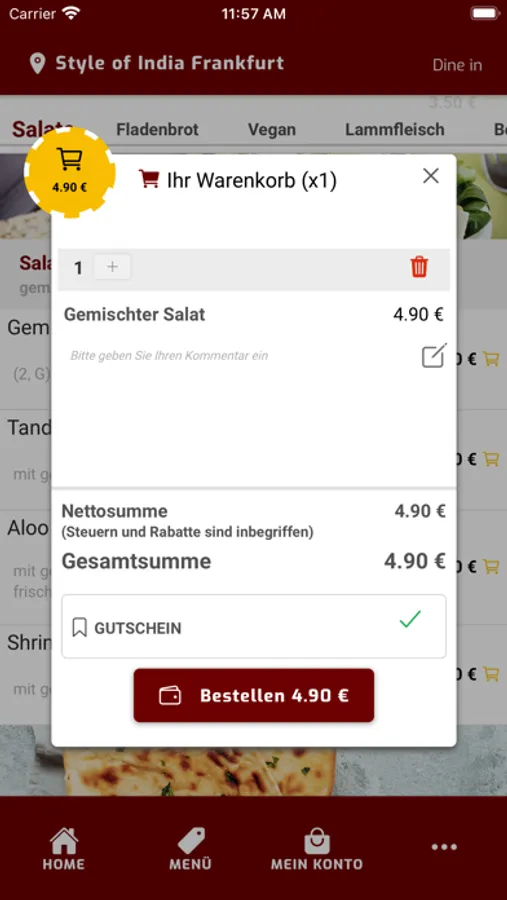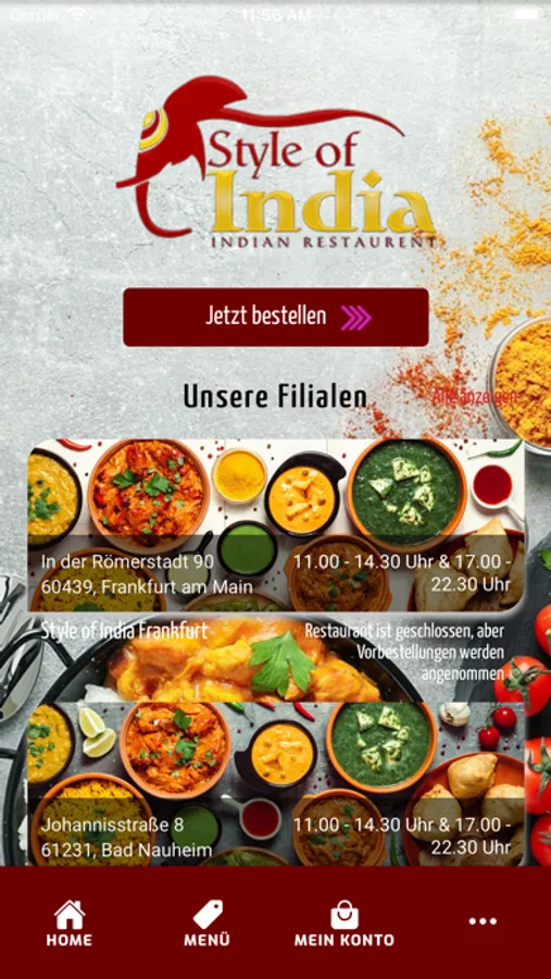 Herzlich Willkomen bei Style of India in Frankfurt. Wir bedienen unsere Kunden mit Salate, Vegan, Lammfleisch, Hähnchenfleisch Speisen und machen das seit mehreren Jahren aus Leidenschaft. Wir freuen uns immer wieder neue Kunden unsere Herkunft näher zubringen und möchten ihnen die Möglichkeit geben, ihre Bestellung unkompliziert und total einfach abzugeben. Aus diesem Grund, möchte wir ihnen unsere neue App und unseren Online Shop vorstellen, mit dem Sie problemlos über Paypal, Bar und Kreditkarte zahlen können.