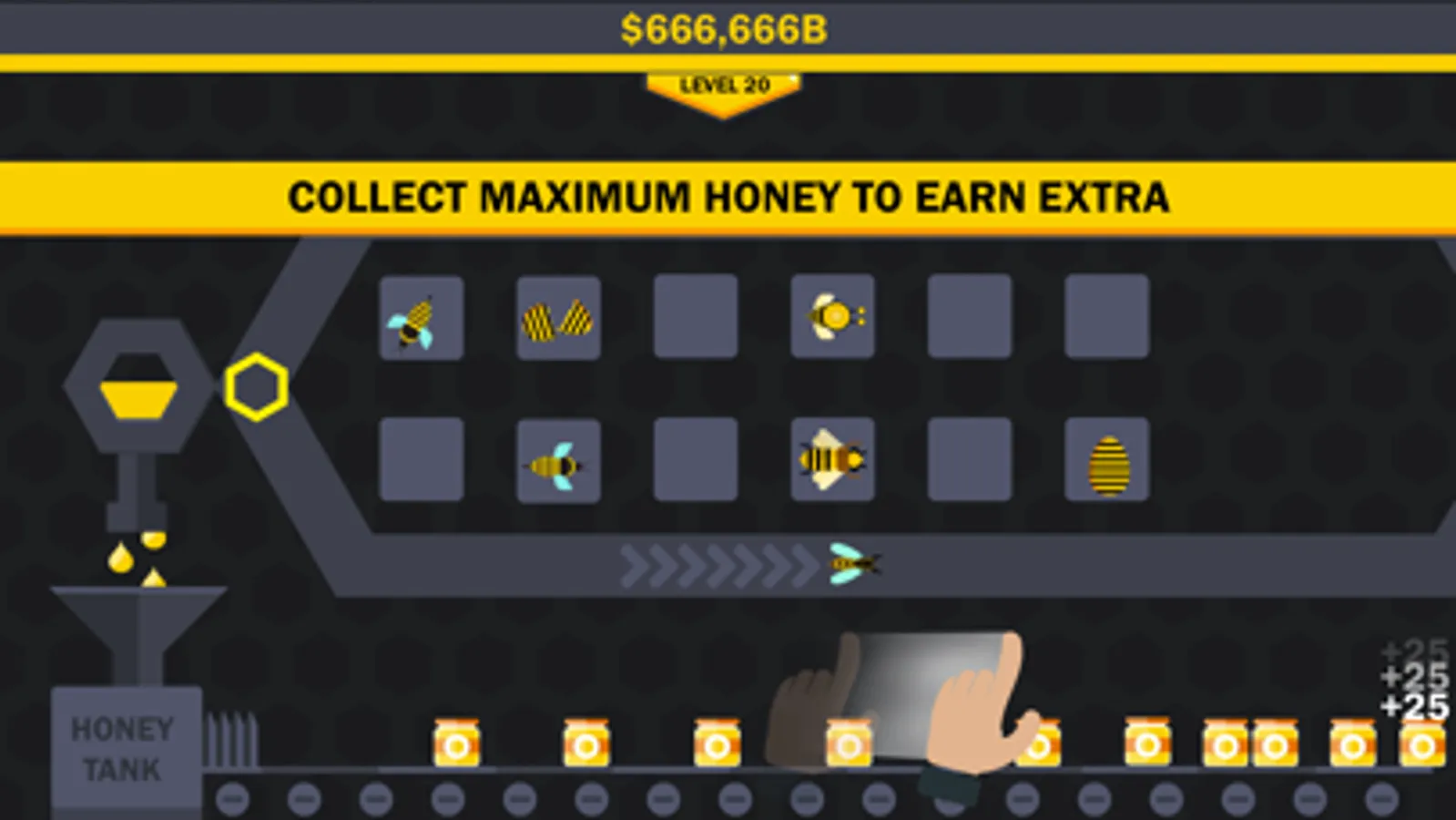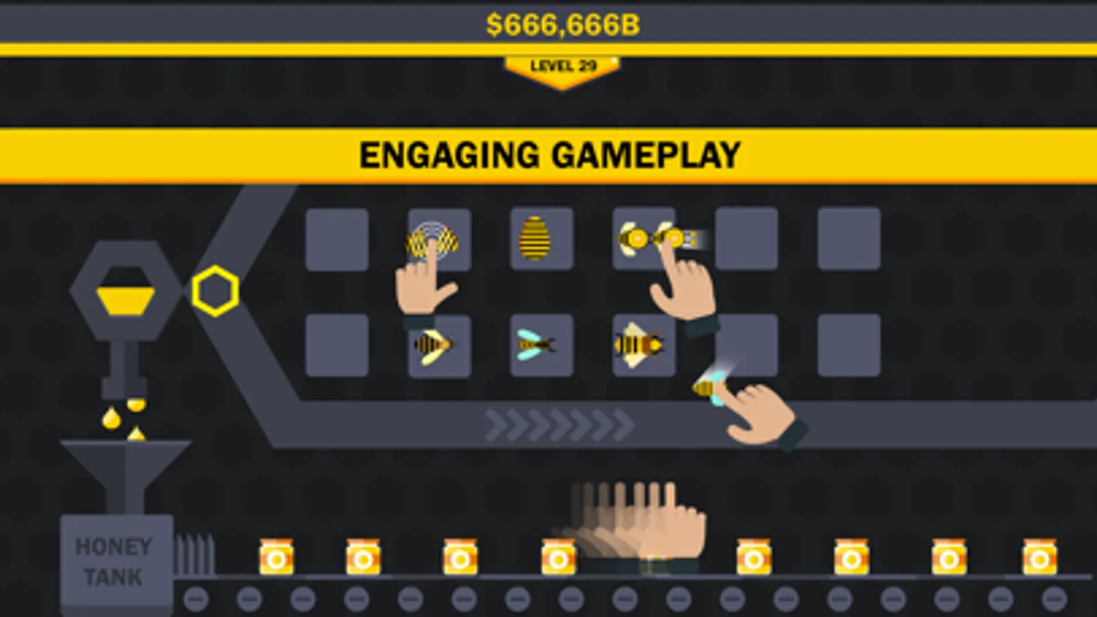 Start playing with different bees and honey, merge same bees and generate more powerful bee. when you generate new bees it become more speedy and double earn-able. earn money and unlock bee step bu step, also in the game you got egg when so you get one surprise bee.