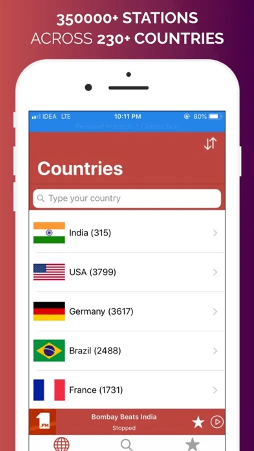4. Countries list (Select country and listen to the AM FM Radio Stations)