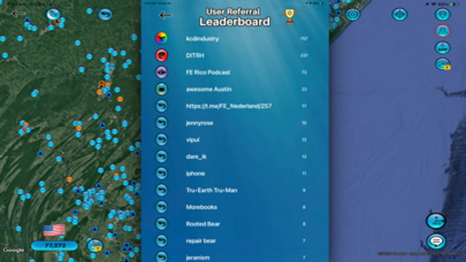 • Friend Finder:Find flat earth app users all across the earth plane. Show your exact, approximate, or hide your location at any time. Worldwide blue dot counter. Country selector, tap the flag and select anywhere across the earth plane to view. With subscription, you can access the Friend Finder (FF) messaging which will allow you to read incoming messages and send instant messages or a group message to everyone within your selected radius. Meet & network with like minded people near you. Make new life long friendships and possibly more!