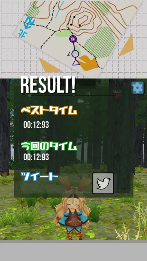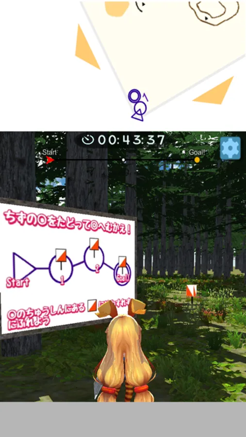 画面上に表示されたマップを頼りにオレンジと白のコントロールフラッグを目指して進もう!