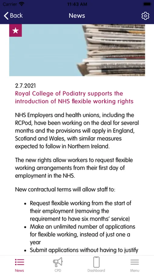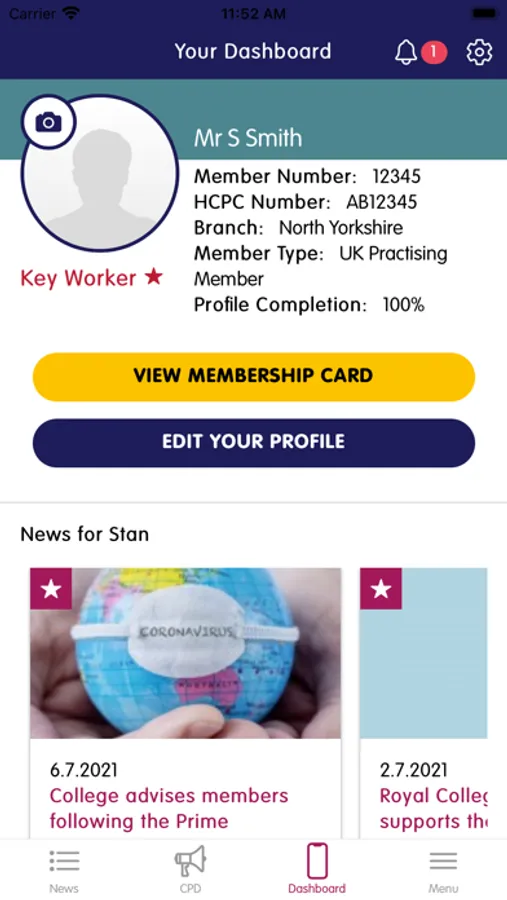 Members can use the app to update their contact details, keep up to date with College news and contact the College.