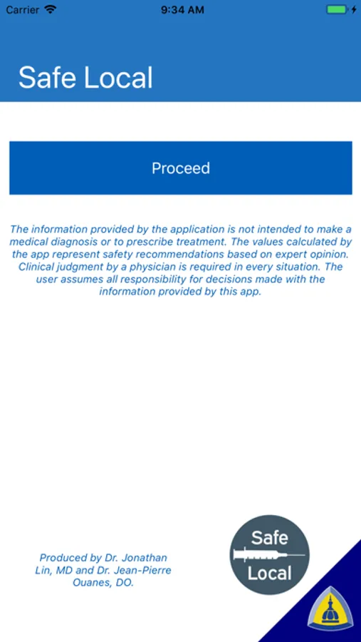 SafeLocal is an application developed by Johns Hopkins that makes calculating safe dosages of local anesthetic quick and easy for anesthesiologists, surgeons, and other medical providers. It seamlessly incorporates patient weight, disease processes, mixtures of local anesthetic, and presence or absence of additives, to calculate the maximum safe dose of local anesthetic without the hassle of going through the calculations by hand, all while tracking how much of the maximum safe dose has been used up and how much is left over for safe administration.