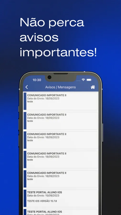 Avisos da instituição;